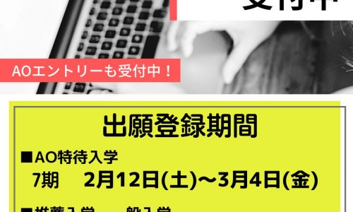 10月15日(土)からAO特待入学3期、推薦・指定校推薦・一般入学2期 出願受付開始!
